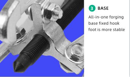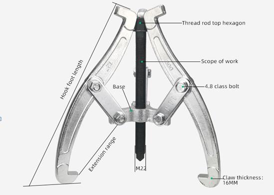 Six high-strength bolts joint the screw and jaws. The three jaws evenly distribute the pulling force, while the claws of the jaws